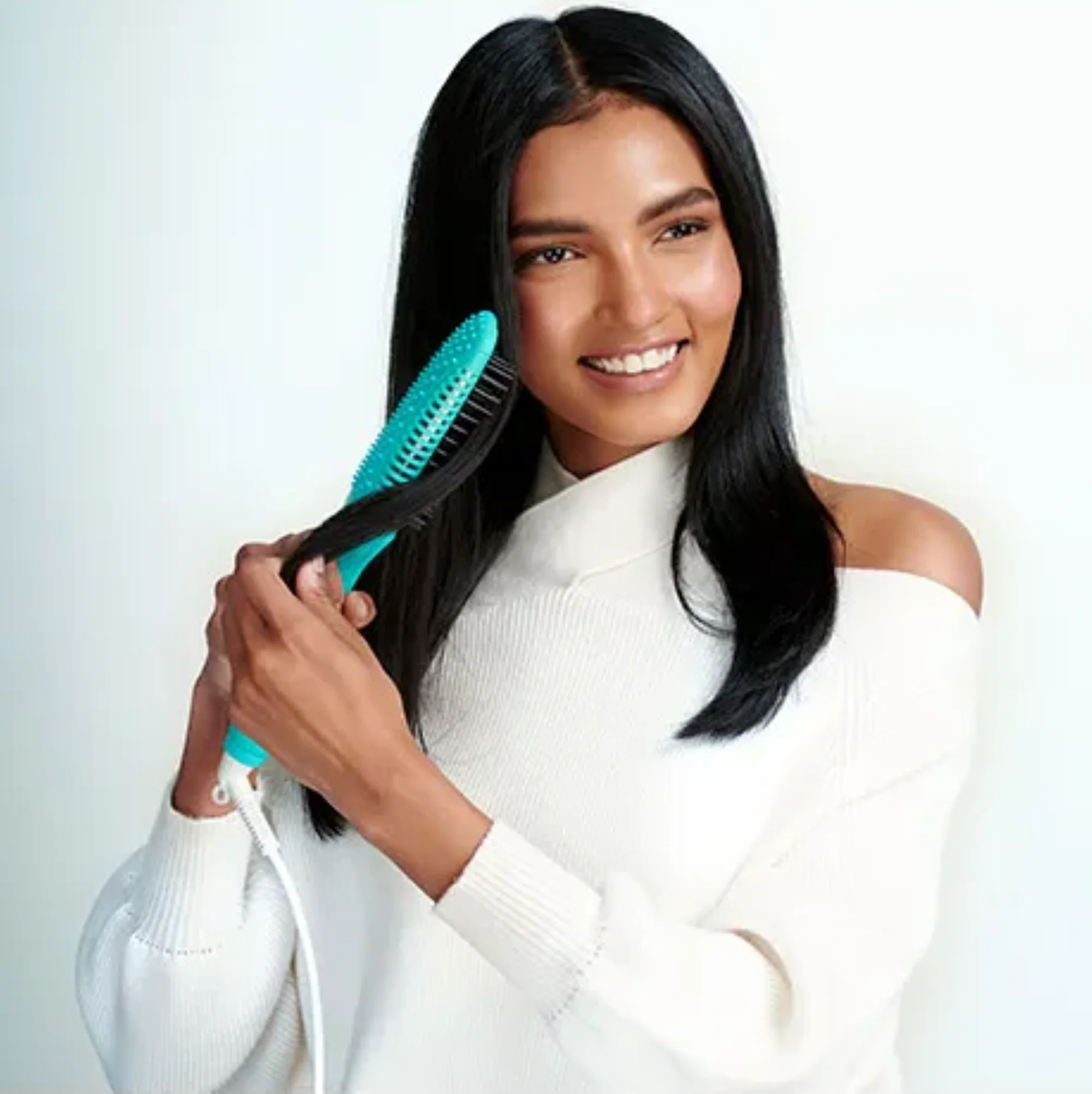 This ceramic heated brush combines the heat styling benefits of a flat iron with the convenience of a paddle brush to deliver sleek, smooth styles in a single step. FEATURES: Heated beveled edges smooth hard-to-reach areas close to the root. Advanced ionic technology minimizes static for shiny, frizz-free results. Ceramic cool tip bristles provide a smooth, effortless glide. Heats quickly in under 60 seconds. Ergonomic soft-touch grip. hour automatic shut-off for worry-free styling. Includes a heat-resistant pouch.