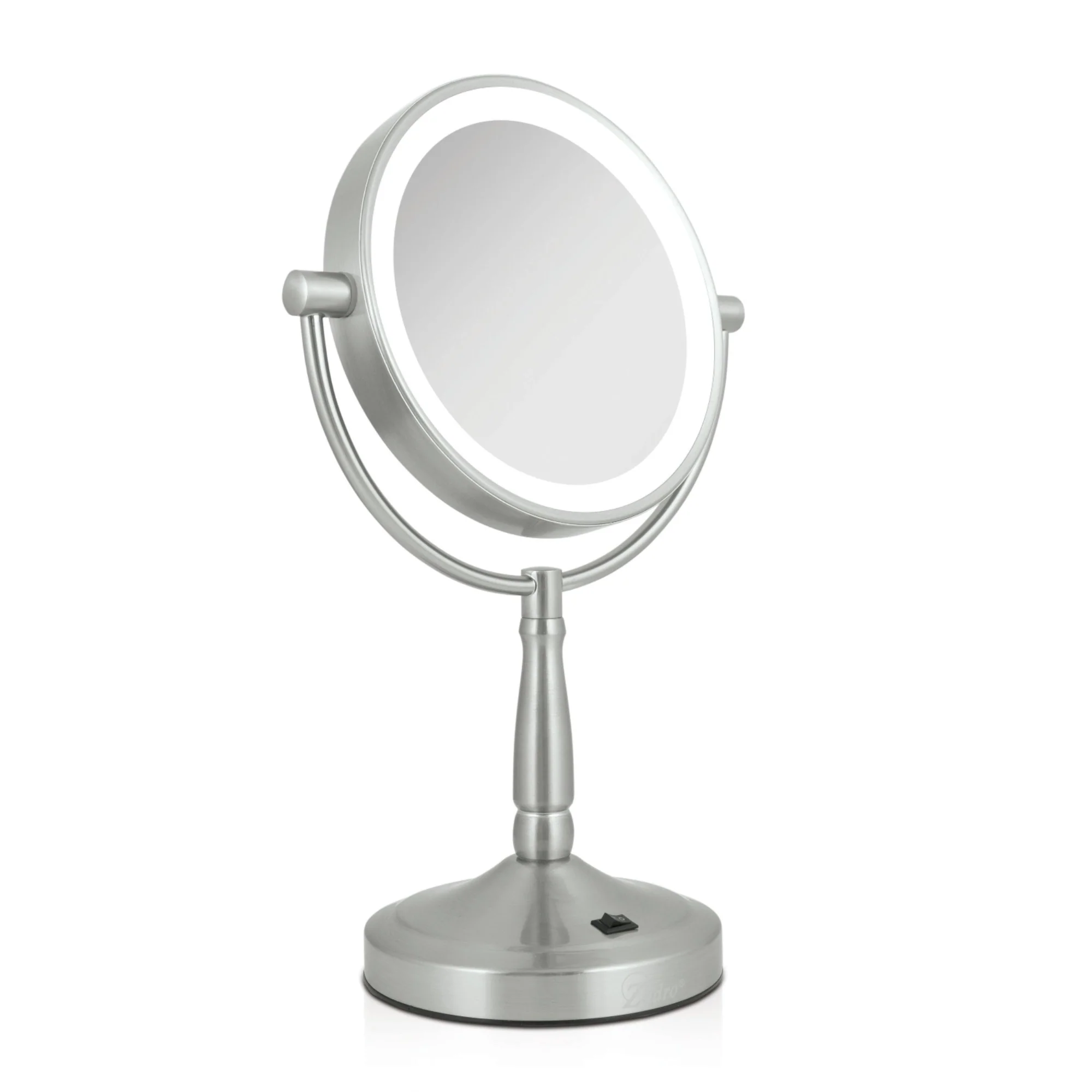 Energy-Saving LED Lighting Consumes up to 70% Less Electricity than Regular Bulbs Cordless, so You Can Move it Anywhere Dual-Sided 10X & 1X Magnifications Mirror Head Swivels 360° . FEATURES: Energy-Saving LED Lighting Consumes up to 70% Less Electricity than Regular Bulbs Cordless, so You Can Move it Anywhere Dual-Sided 10X & 1X Magnifications Mirror Head Swivels 360° Battery powered 9" W x 5.5" D x 14" H Zadro's LED Lighted Vanity Mirror features dual-sided, optical quality glass to ensure a clearer reflection of your true self. While Supplies Last.
